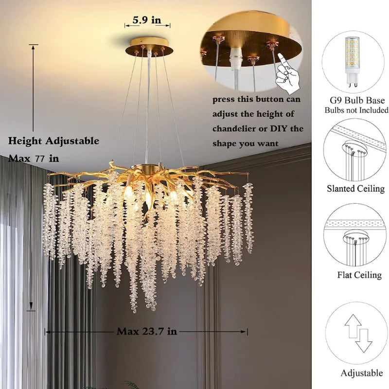 Looking for a light that makes your home look modern and classy? The Modern Crystal Chandelier with Beaded Design is the perfect choice. With shiny crystal beads hanging down like a waterfall, this chandelier adds beauty and charm to any room.